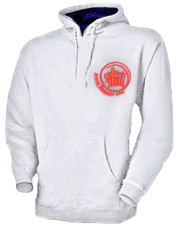 Ash Grey hoody (no-zip); a smooth two-tone contrast navy inner hood lining (for style) and our red ilm logo, embroidered on the breast. |